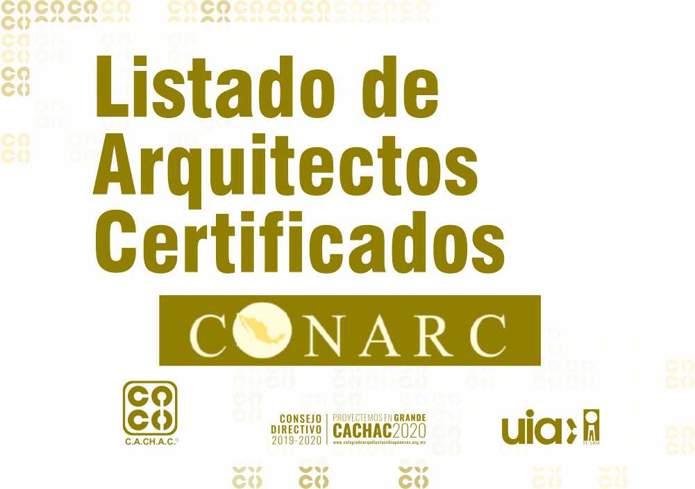 Listado extraído de la página web de la Federación de Colegios de Arquitectos de la República Mexicana, A. C. (FCARM) http://www.fcarm.org.mx/listado-de-arquitectos-certificados-conarc/