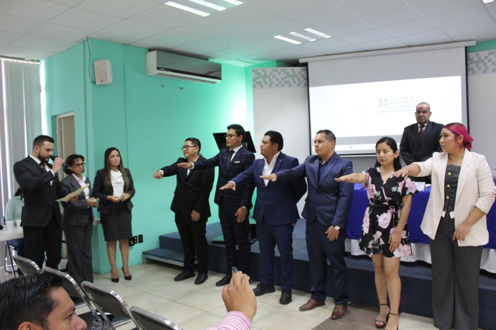 Asimismo durante esta asamblea tomaron protesta 18 nuevos agremiados al CACHAC: las y los arquitectos Eli Misael Gonzรกlez Zea, Juan Josรฉ Trejo Porras, Josรฉ Andrรฉs Jonapa Gonzรกlez, Eros de Jesรบs Anaya Pรฉrez, Diego Ivรกn Mancilla Gonzรกlez, Sari Alejandra Hernรกndez Martรญnez, Diana Yesenia Guillรฉn Castillejos, Laura Carolina Vรกzquez Dรญaz, Eric Rooney Urbina Ocaรฑa, Noรฉ de Jesรบs Alcazar Castellanos, Pedro Angel Encinos Gรณmez, Kairo Zeus Franco Silva, Luis Arturo Fernรกndez Lรณpez, Ramiro Antonio Soto Vives, Jesรบs Antonio Caballero Blass, Sergio Jesรบs Gutiรฉrrez Gordillo y Edid Marcela Juan Cruz.