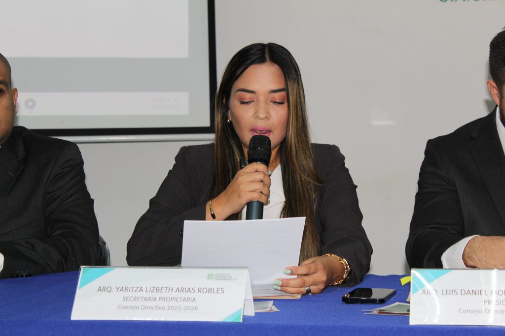 En este marco, la Junta de Honor del Colegio tomรณ protesta a la arquitecta Ana Luisa Domรญnguez Hernรกndez, como secretaria suplente del Consejo Directivo 2025-2026.