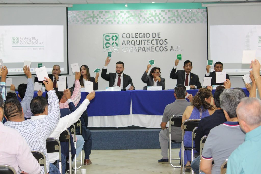 En el marco de la 1ยช Asamblea General Ordinaria del 2025 del Colegio de Arquitectos Chiapanecos A.C., el presidente del Consejo Directivo de este organismo, Arq. Luis Daniel Monclova Hernรกndez, rindiรณ el informe de actividades correspondiente al primer semestre del 2025, ratificando el compromiso de continuar trabajando por el cumplimiento de los objetivos trazados, el crecimiento y la consolidaciรณn del #CACHAC.