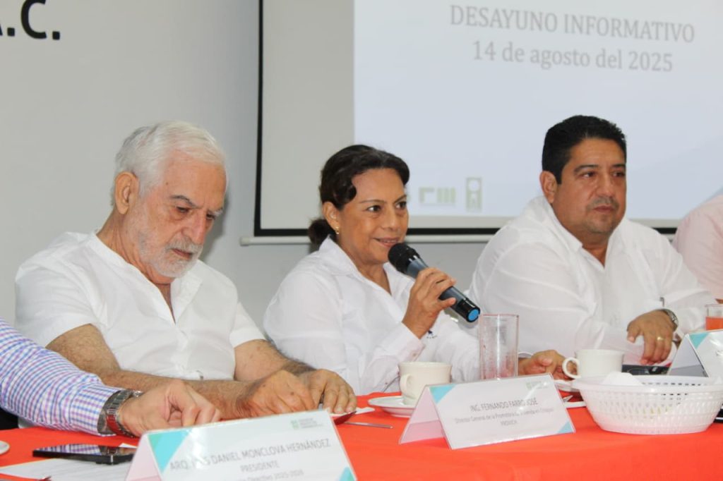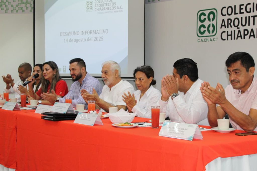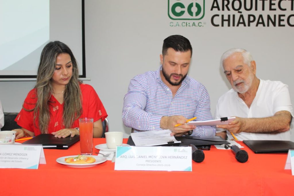 Este acto, realizado en el marco del tradicional desayuno gremial del #CACHAC, fue atestiguado por la diputada Alejandra Gómez Mendoza, Presidenta de la Comisión de Desarrollo Urbano y Obras Públicas del Honorable Congreso del Estado de Chiapas y el vicepresidente de la FCARM Región III, Arq. Manuel Santiago Baeza del Valle.