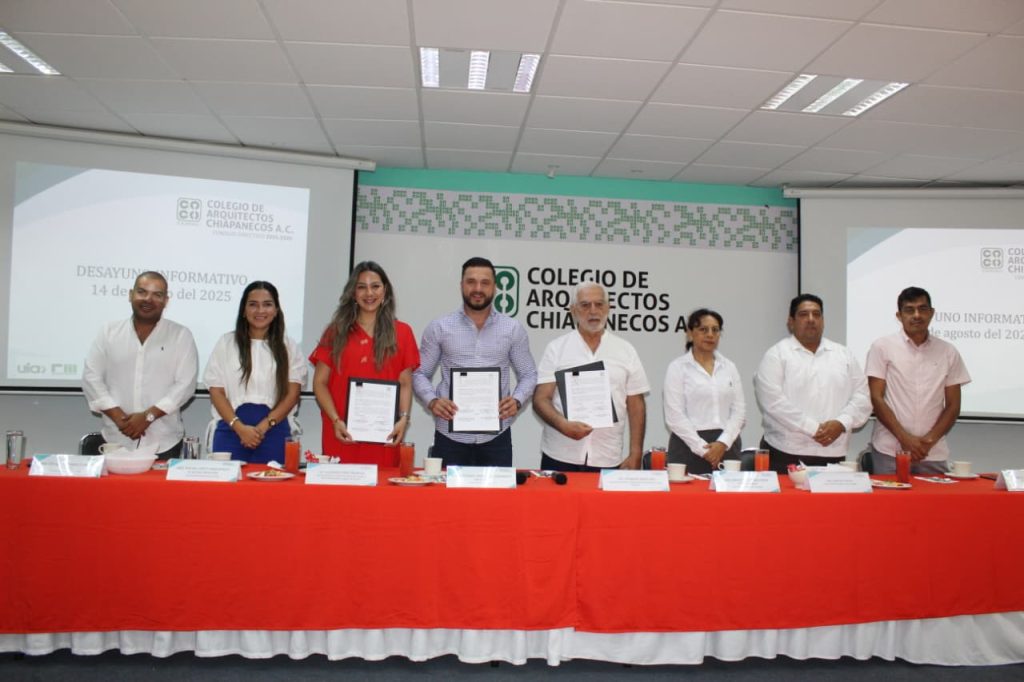 Con el objetivo de conjuntar esfuerzos, el presidente del Consejo Directivo del Colegio de Arquitectos Chiapanecos A.C., Arq. Luis Daniel Monclova Hernández y el titular de la Promotora de Vivienda Chiapas, Ing.vFernando Farro José, llevaron a cabo la mañana de este jueves, la firma de un convenio de colaboración.
