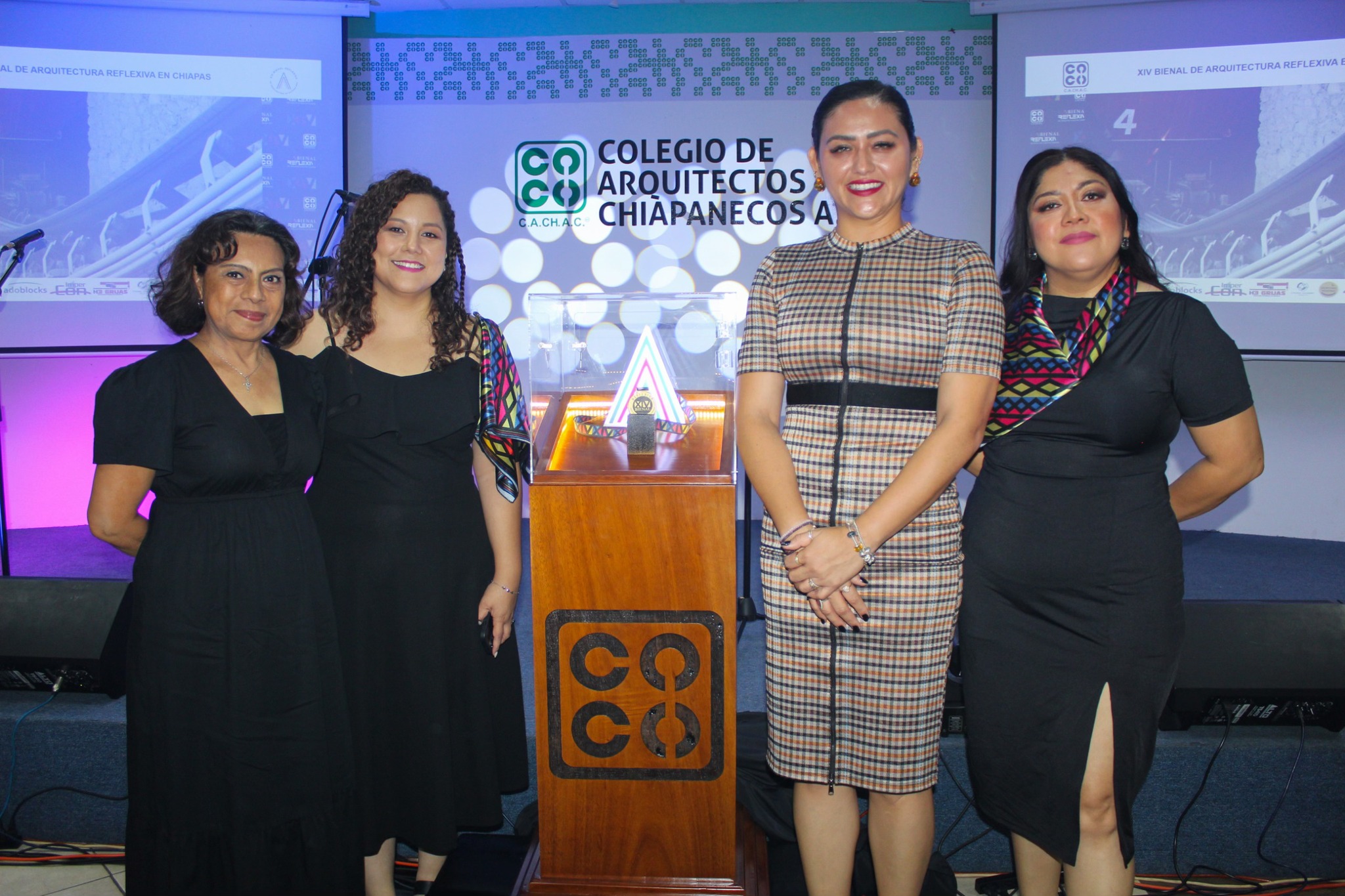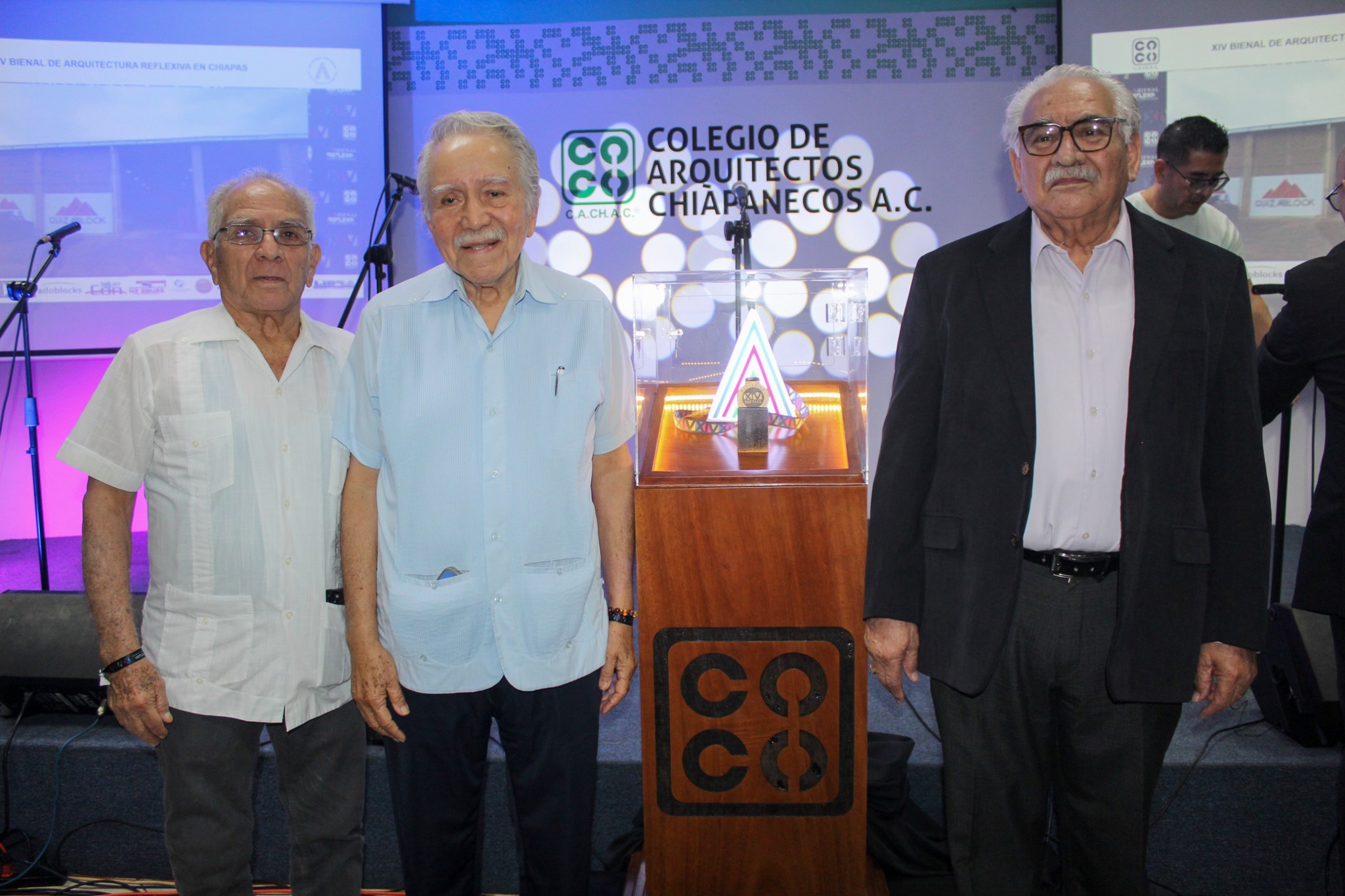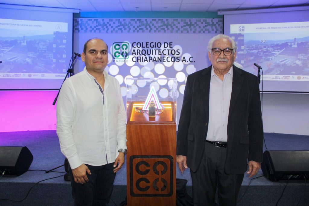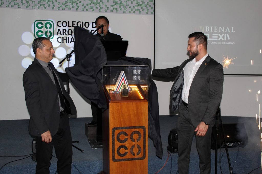 En este marco se llevó a cabo la develación de la medalla de oro que este año será otorgada al ganador de la XIV Bienal de Arquitectura Chiapaneca.