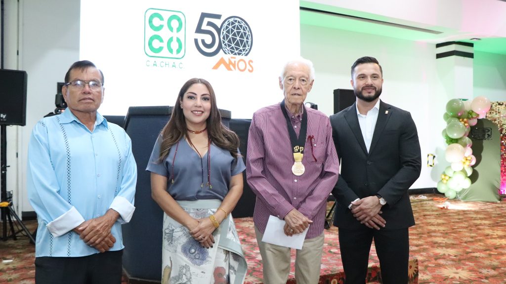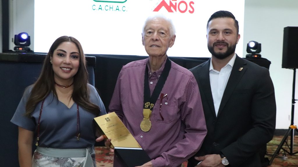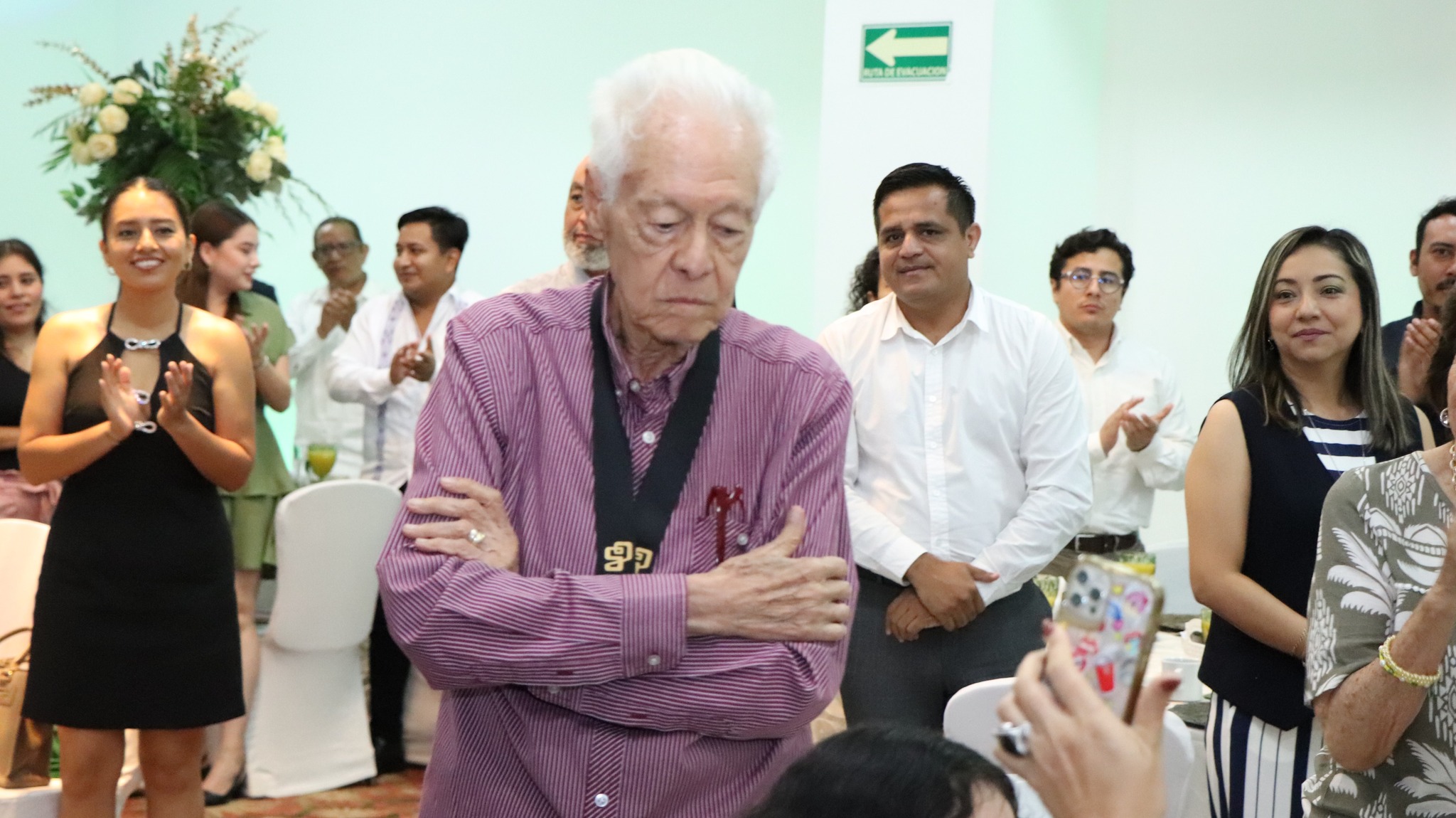 Durante este acto, la secretaria de Infraestructura junto a los presidentes del Consejo Directivo y de la Junta de Honor del CACHAC, arquitectos Luis Daniel Monclova Hernández y Armando Alvarado Maldonado y la vicepresidenta, Arq. Marlene Gutiérrez Pérez, entregaron un reconocimiento al arquitecto Julio César Cifuentes Constantino, decano y fundador del Colegio de Arquitectos Chiapanecos, destacando su vida profesional y gremial, resaltando que su trayectoria y enseñanzas mantienen viva la esperanza en las nuevas generaciones, que buscan seguir sus pasos para trazar un mejor futuro y consolidar a este gran colegio.