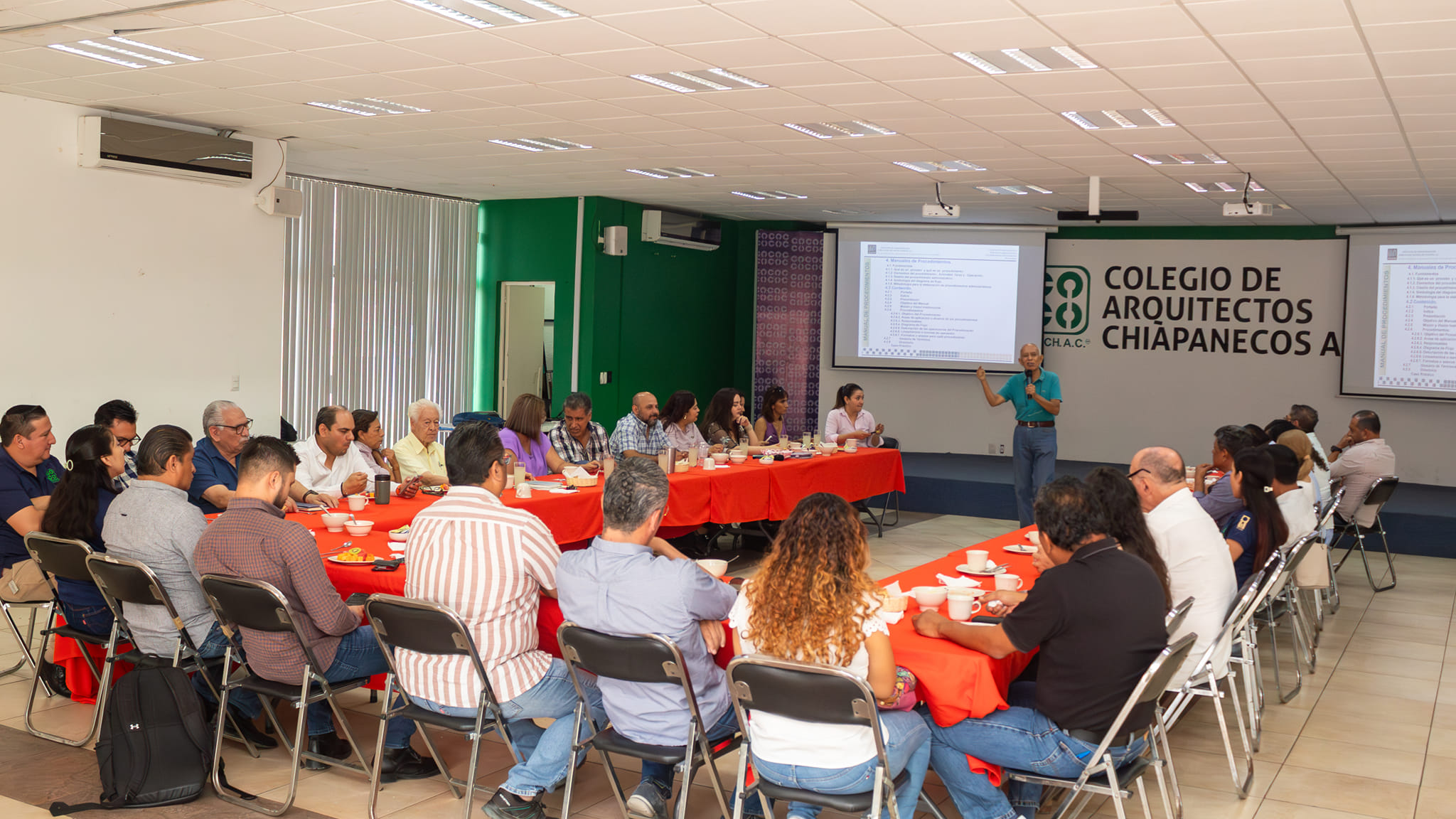 Integrantes de los Consejos Consultivo y Directivo, de la Junta de Honor, Coordinadores de Comisiones y personal administrativo del Colegio de Arquitectos Chiapanecos A.C., sostuvieron una amena reunión de trabajo en la que intercambiaron opiniones con el propósito de realizar el Manual de Operaciones del #CACHAC.