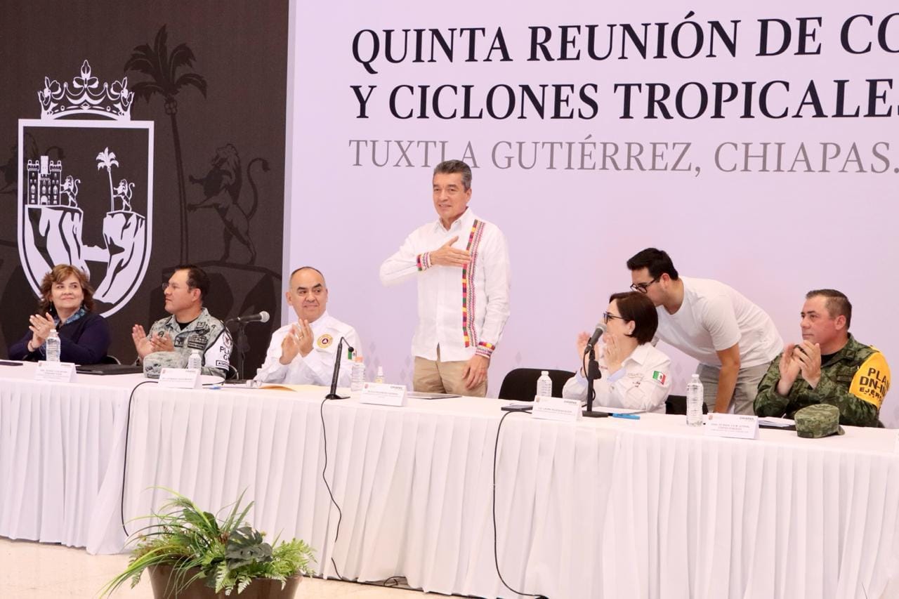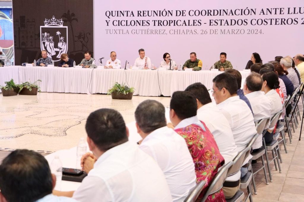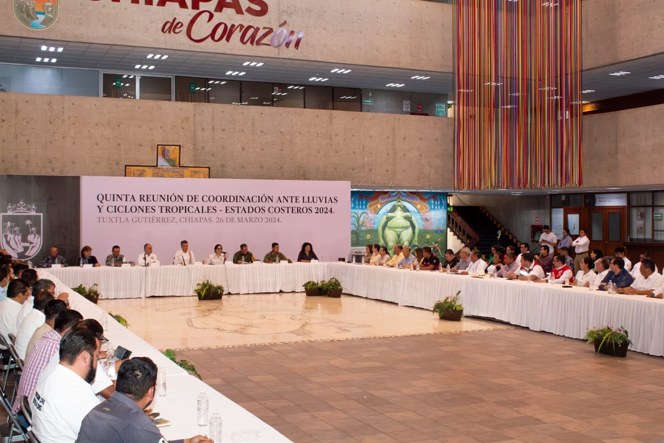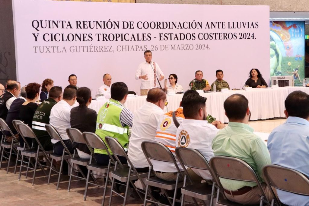 El presidente del Consejo Directivo del Colegio de Arquitectos Chiapanecos A.C. Mtro. Joel Enoch Cruz Sosa participรณ en la Quinta Reuniรณn de Coordinaciรณn ante Lluvias y Ciclones Tropicales 2024 encuentro que fue encabezado por el gobernador Dr. Rutilio Escandรณn Cadenas y la coordinadora nacional de Protecciรณn Civil, Dra. Laura Velรกzquez Alzรบa