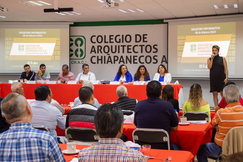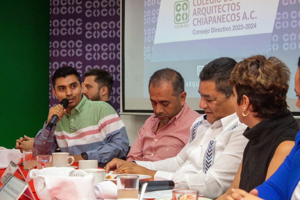 En un intercambio de opiniones y propuestas con los arquitectos agremiados, Baca Esquinca compartiรณ el plan de trabajo en materia de infraestructura a desarrollar este aรฑo en Chiapas, resaltando que se busca que los agremiados al CACHAC sean copartรญcipes de estas acciones.